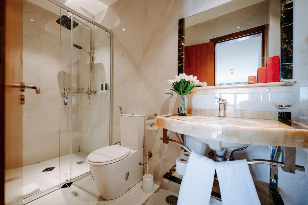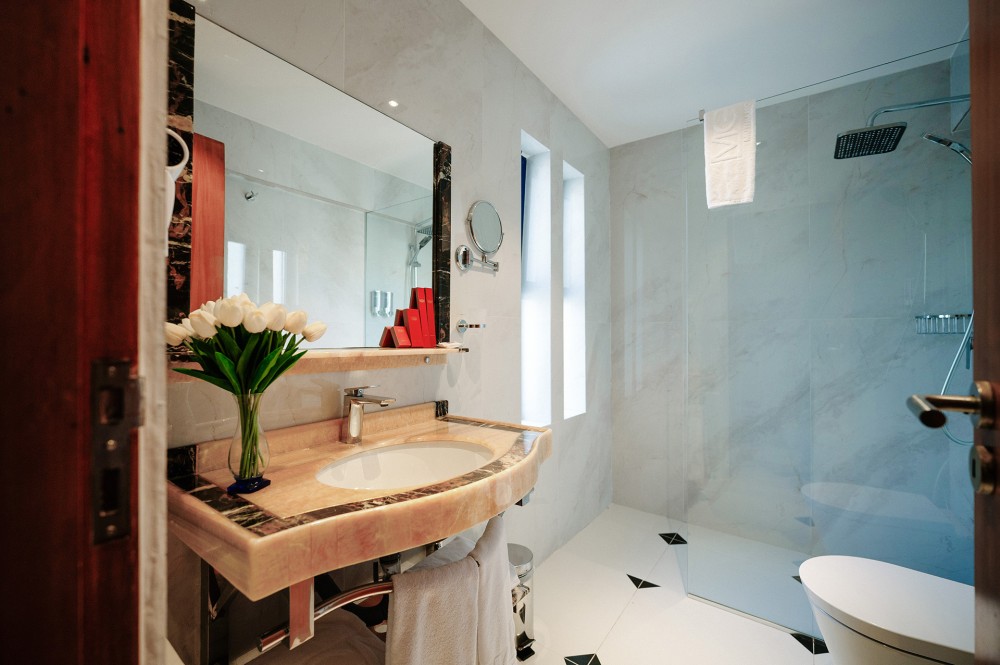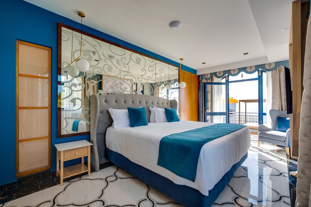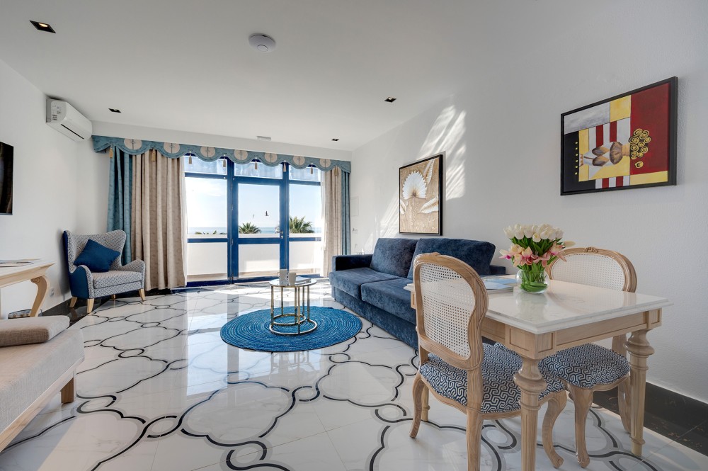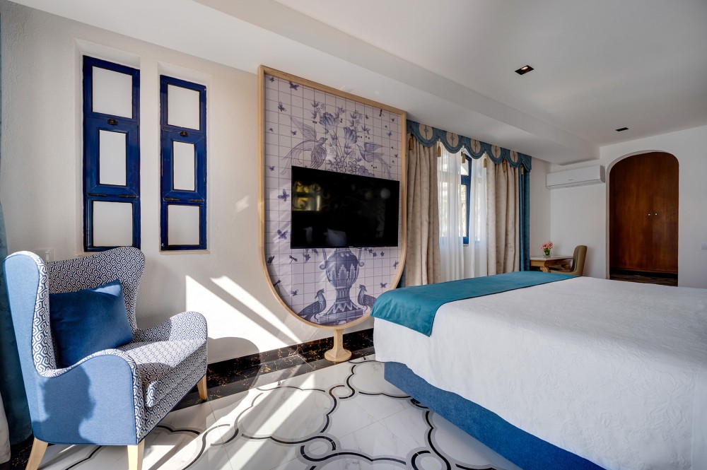 Distribuida en dos niveles, la Suite Dúplex ofrece un espacio generoso y una privacidad perfecta para familias o grupos pequeños. Su cuidada distribución crea un ambiente aireado y acogedor que proporciona una estancia relajada y agradable.