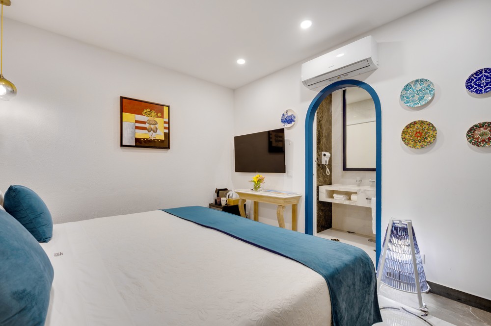 Nuestra habitación doble ofrece un ambiente acogedor y refinado para dos personas. Sus interiores acogedores y su espaciosa distribución crean un ambiente relajado, convirtiéndola en la base perfecta tanto para escapadas cortas como para estancias más largas.