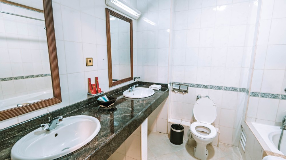Disfruta de una cómoda habitación con aire acondicionado y una acogedora cama con dosel. Relájate junto a los ventanales o trabaja en el escritorio con WiFi. El amplio cuarto de baño dispone de lavabo doble, bañera y ducha para una estancia relajada.