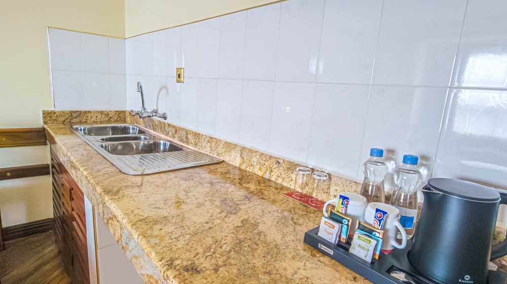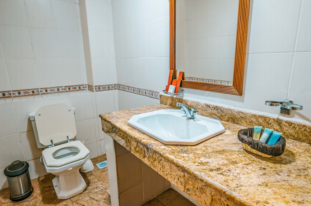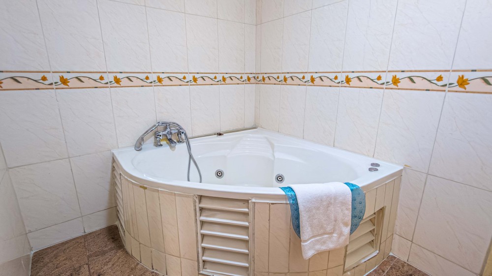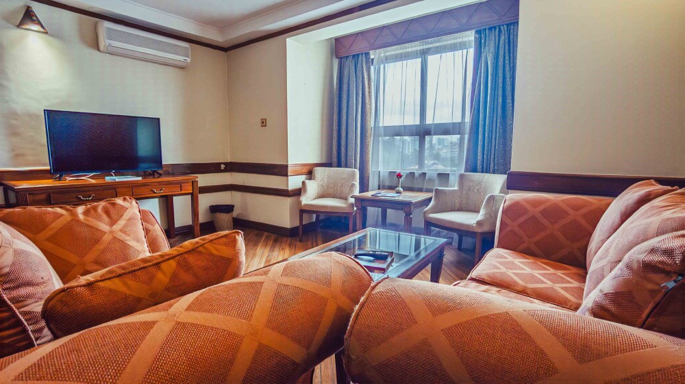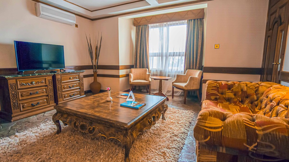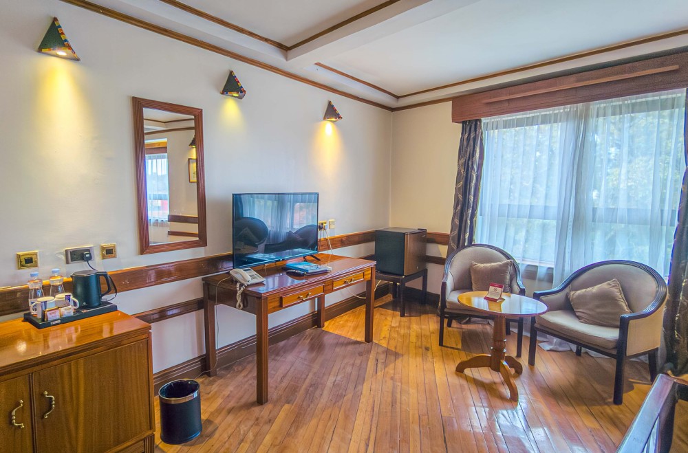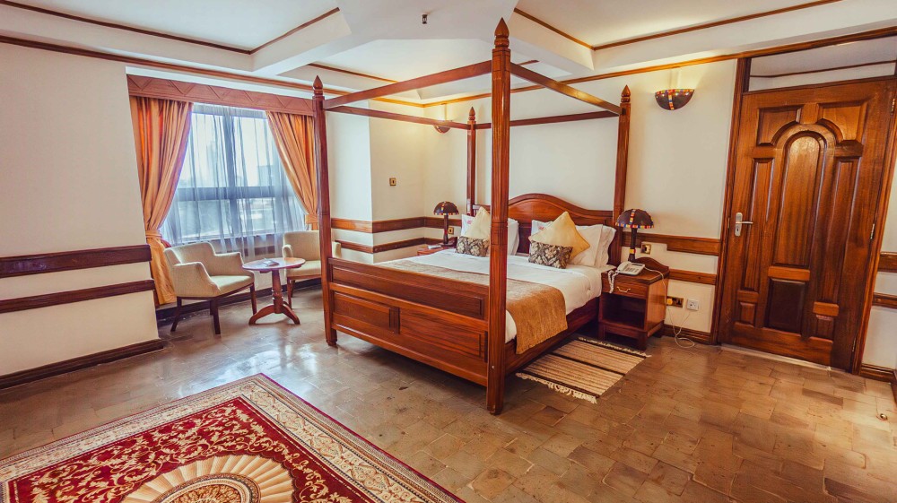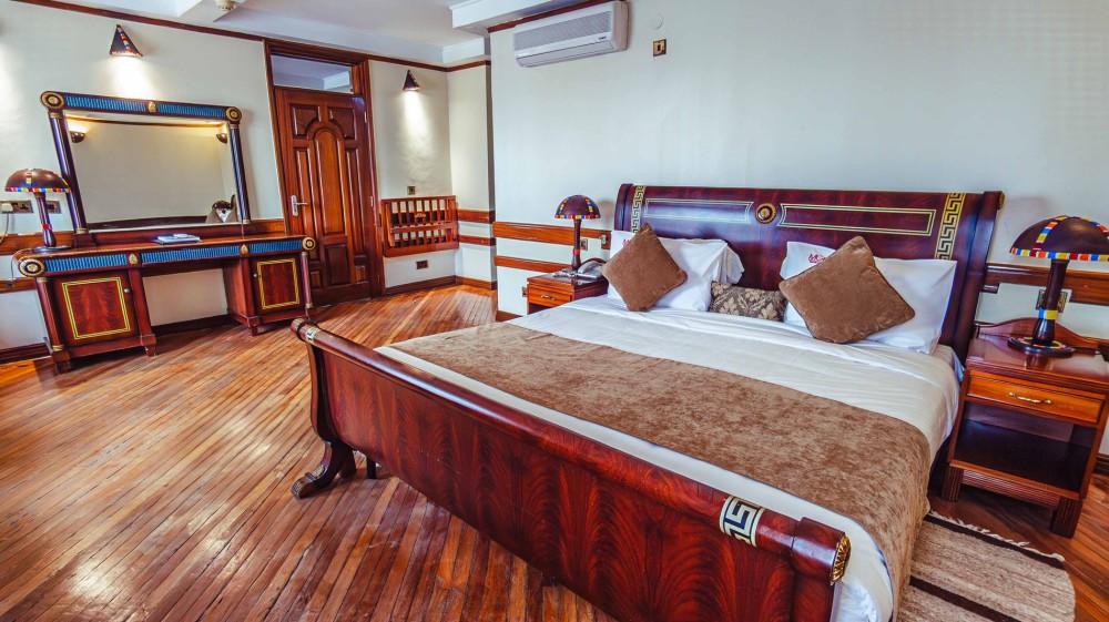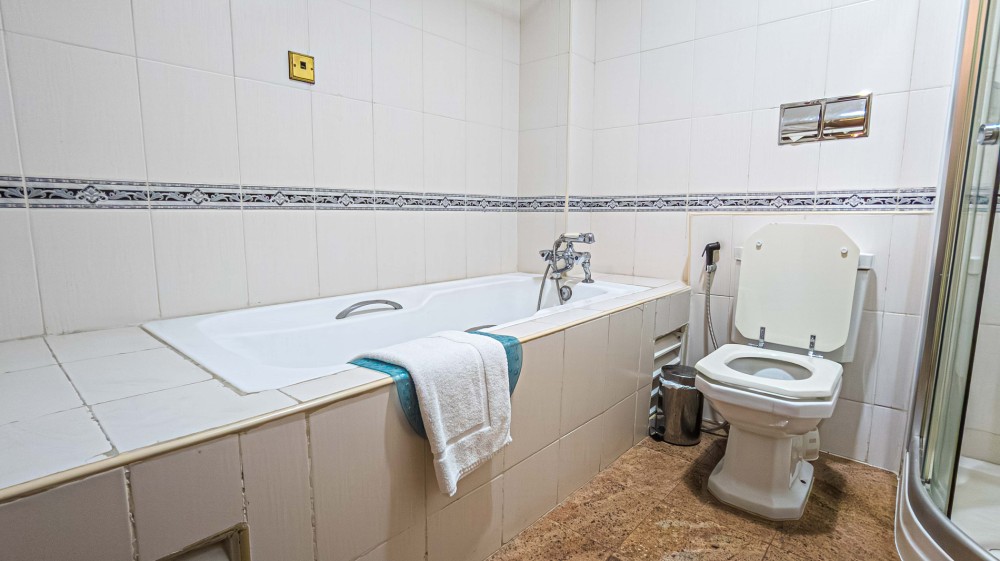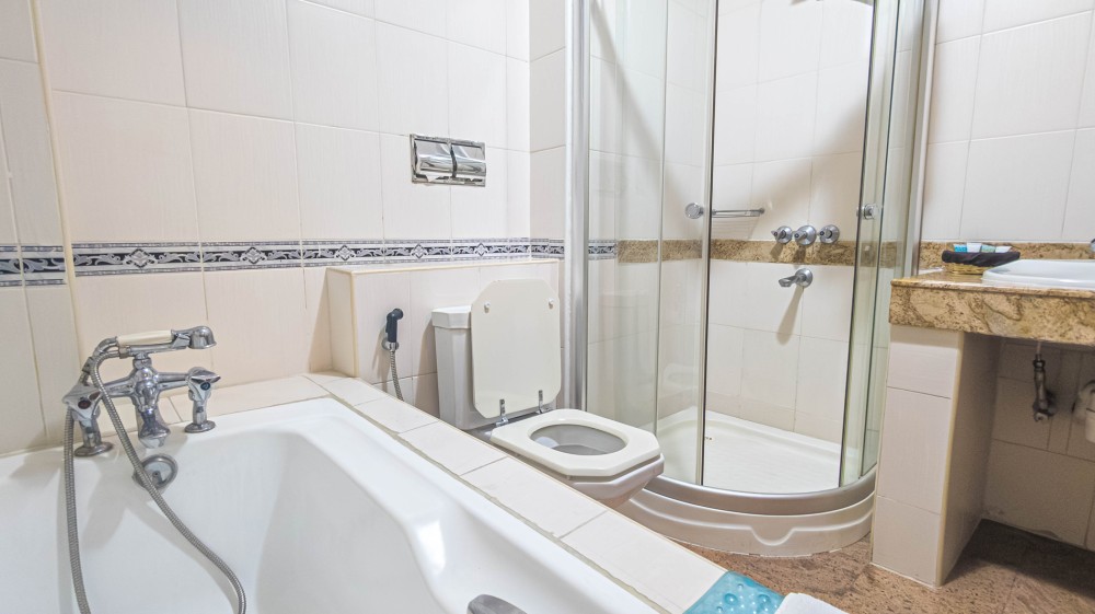Profitez d'une chambre confortable avec un salon séparé doté de la climatisation et d'un lit à baldaquin douillet. Détendez-vous près des baies vitrées ou travaillez sur le bureau avec WiFi. La grande salle de bains est équipée d'un double lavabo, d'une baignoire et d'une douche pour un séjour décontracté.